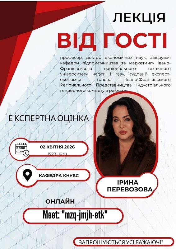 Відбулась гостьова лекція на тему “Експертна оцінка” за участю професорки Ірини ПЕРЕВОЗОВОЇ