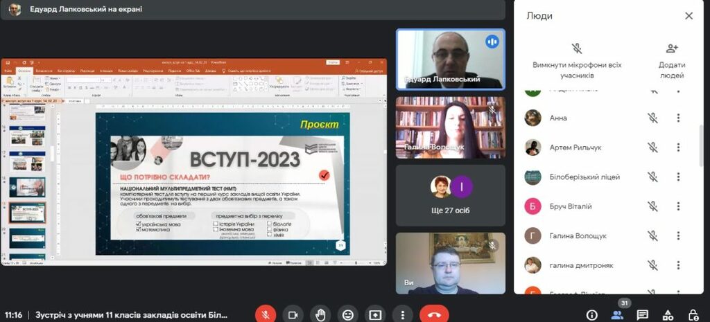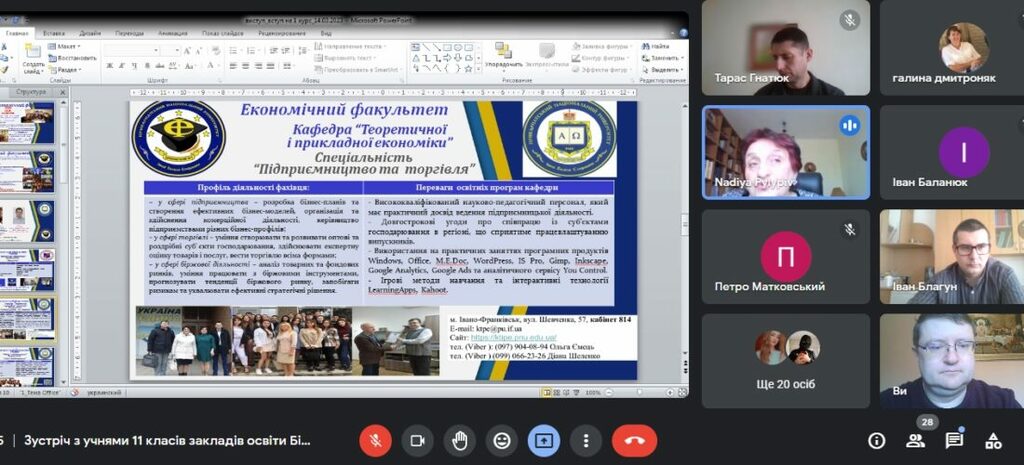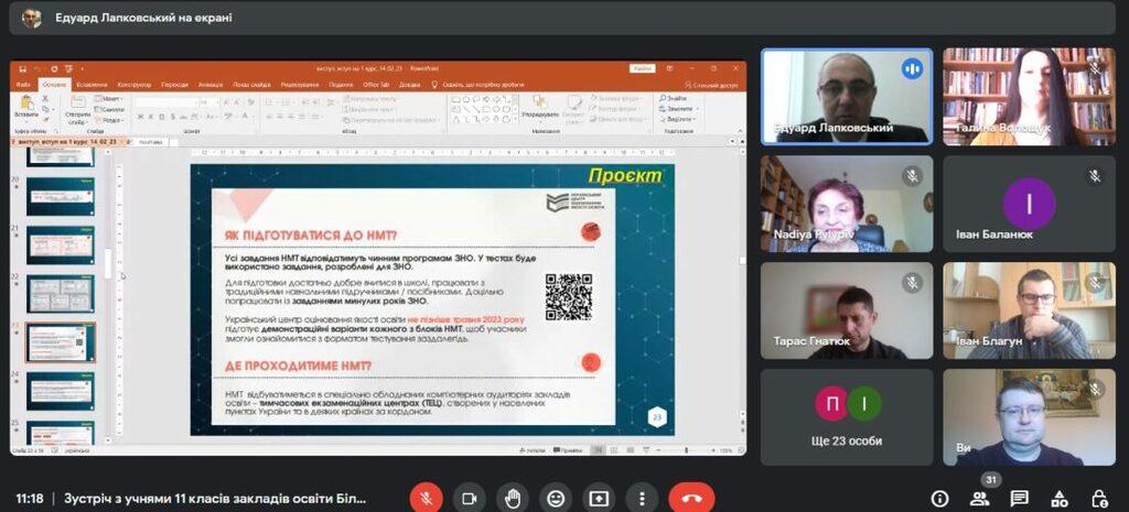 17 березня 2023 р. відбулась чергова зустріч з старшокласниками Білоберізької ТГ. З приємністю було почути теплі вітальні слова учільниці відділу освіти, культури, молоді та спорту Білоберізької ТГ Галини Миколаївни Дмитроняк, для сім’ї якої Прикарпатський національний університет став Alma-mater, адже навчалися вони свого часу всі саме у нашому навчальному закладі.