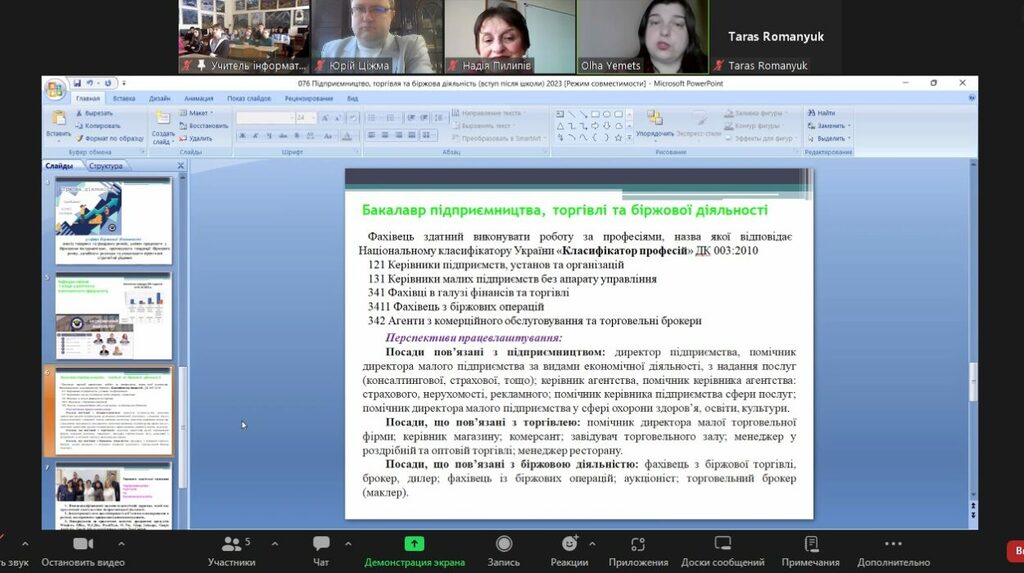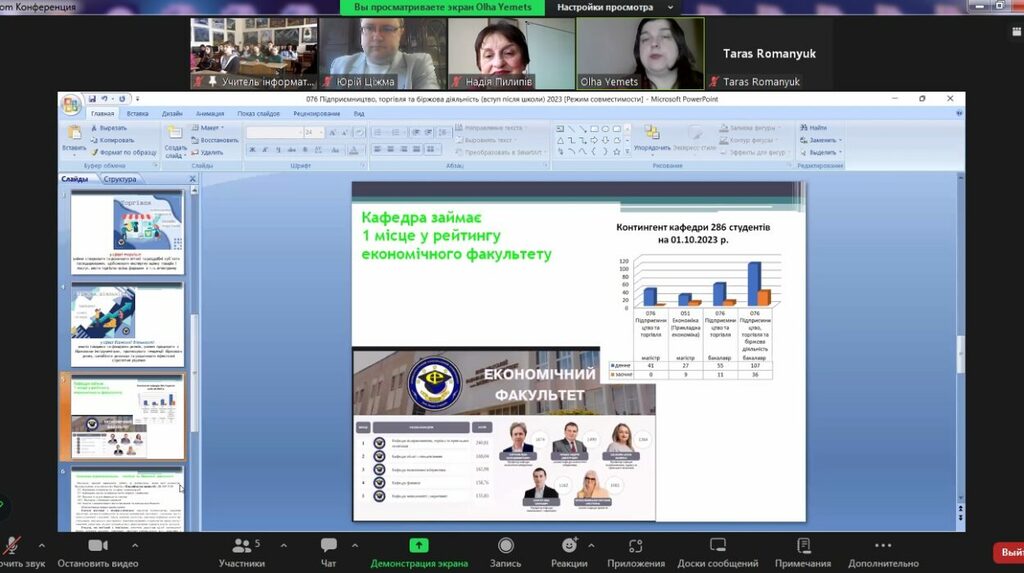 07 березня 2023 р. відбулася профорієнтаційна зустріч професорсько-викладацького складу кафедри підприємництва, торгівлі та прикладної економіки Прикарпатського національного університету імені Василя Стефаника із педагогами та учнями випускних класів Рожнятівського ліцею.