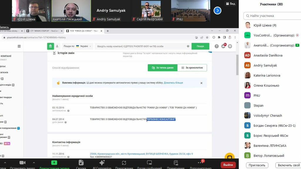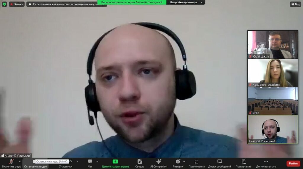 Спікер – Анатолій Пясецький – менеджер навчальних проєктів та тренер компанії Ю-контрол виступив з темою «Можливості сервісу YouControl для перевірки юридичних та фізичних осіб».