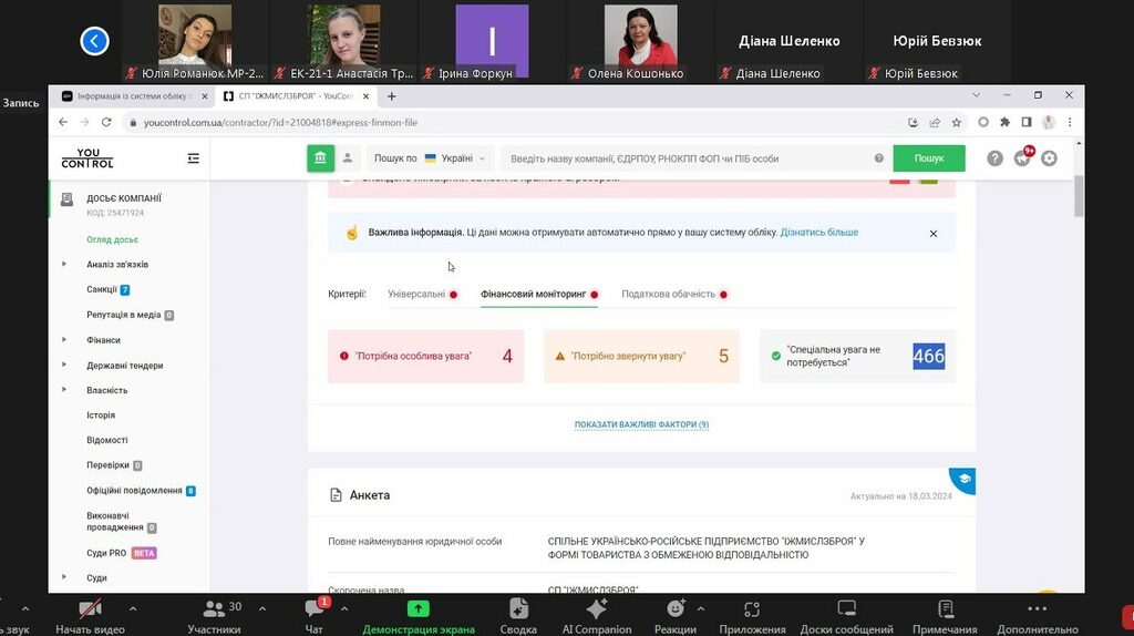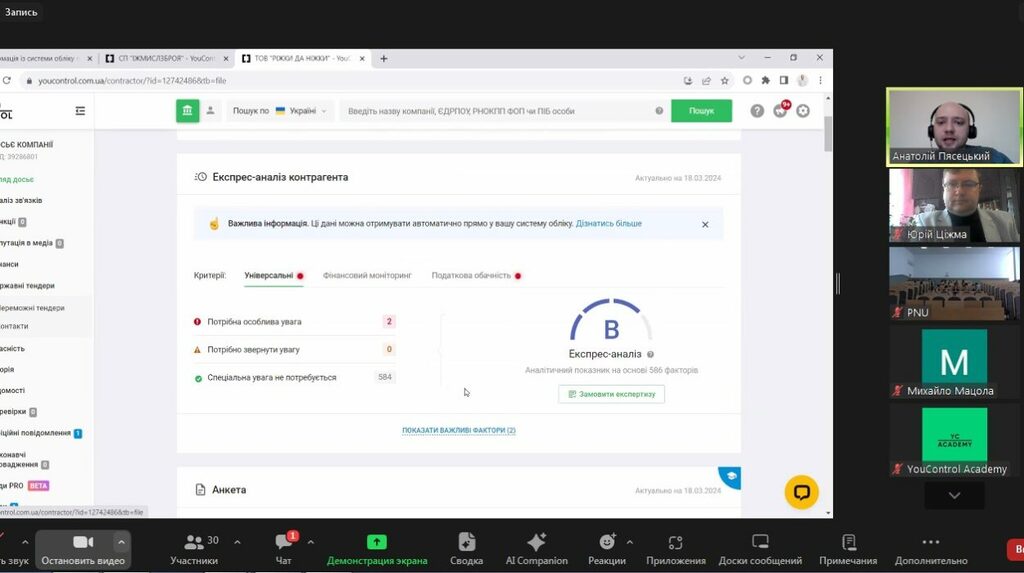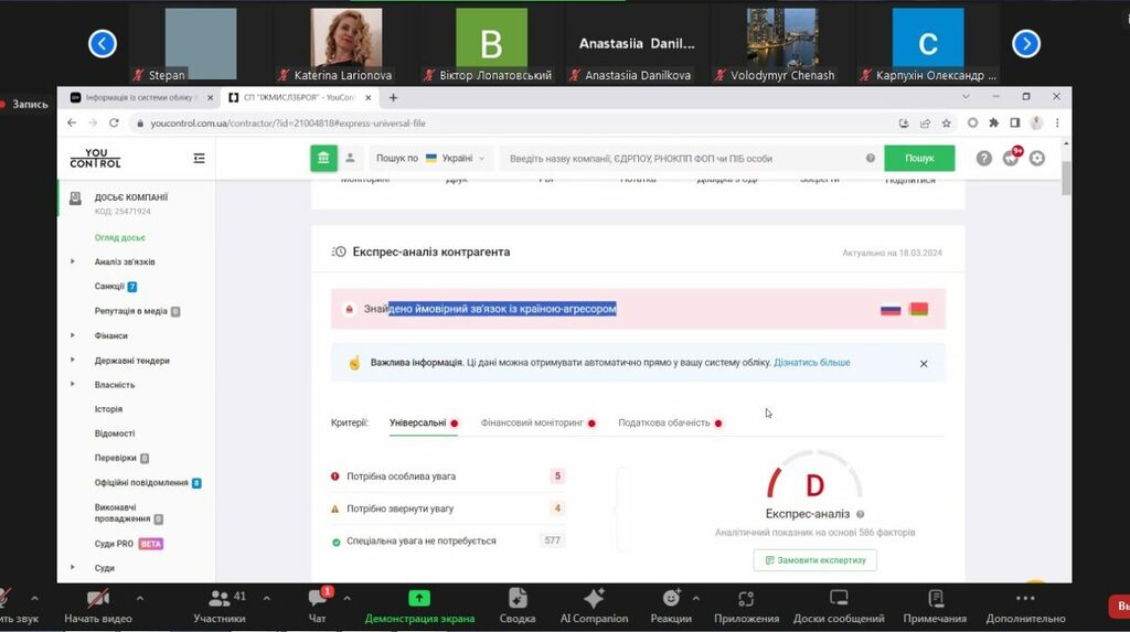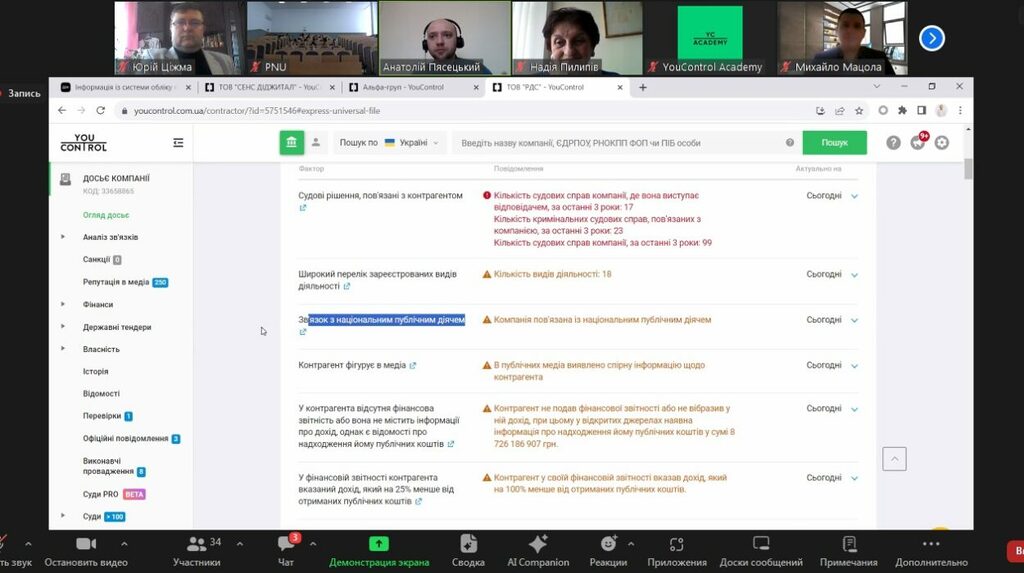 Викладачі та студенти кафедри відвідали гостьову лекцію на тему “Можливості сервісу YouControl для перевірки юридичних та фізичних осіб”