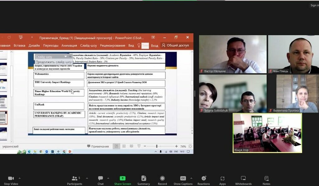 Про складові іміджу університету, що у підсумку формують його бренд, розповів Роман ЩУР. Тетяна СОЛОДЖУК окреслила існуючі методики рейтингування університетів та блок рейтингових показників викладачів, оскільки сучасні умови формування бренду освітянина вимагають з одного боку роботи над просуванням свого імені, а з іншого відповідності показникам за різними напрямами діяльності викладача.