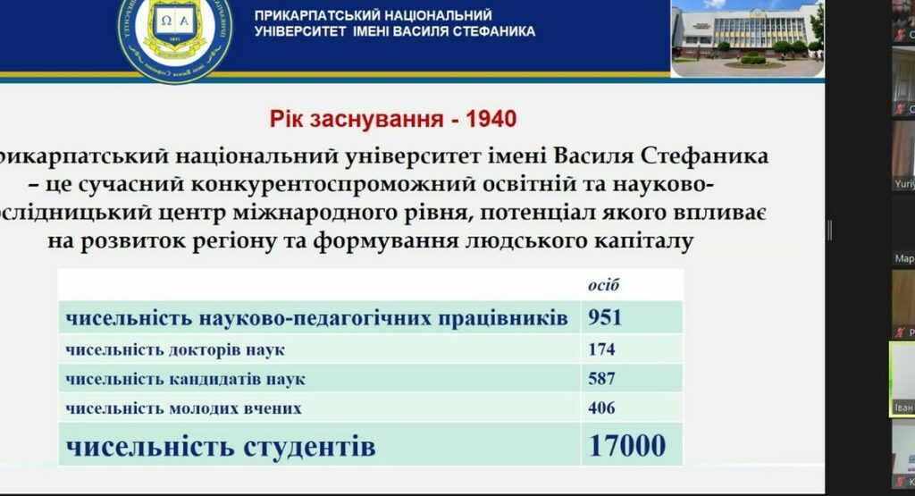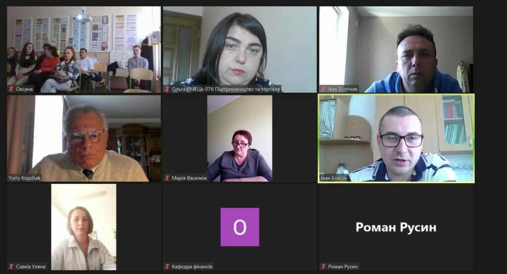 30.04.2024 р. відбулася онлайн-зустріч професорсько-викладацького складу економічного факультету з учнями випускного класу Довговойнилівського ліцею Верхняннської сільської територіальної громади Калуського району Івано-Франківської області. На зустрічі виступили д.е.н., проф., завідувач кафедри підприємництва, торгівлі та прикладної економіки Пилипів Н.І., к.е.н., доц. Ємець О.І. На зустрічі були присутні 15 випускників ліцею.