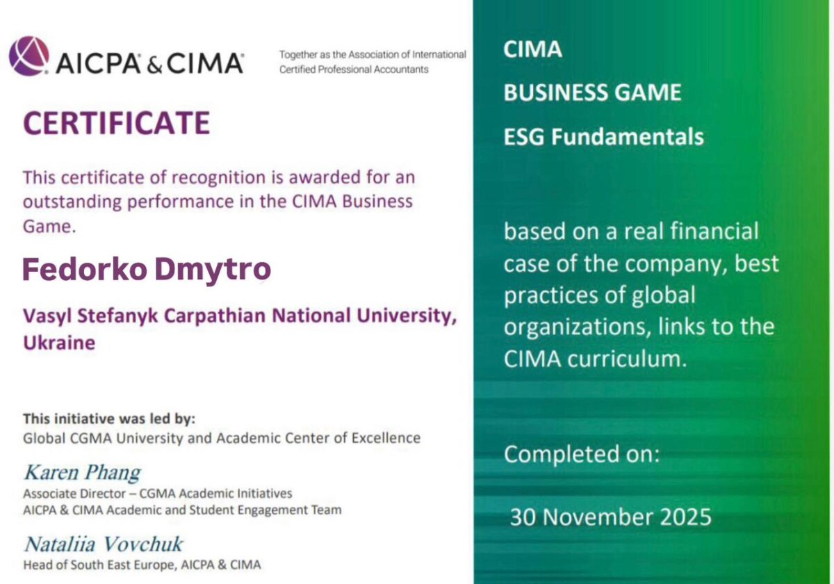 Вітаємо другокурсника спеціальності 076 Підприємництво та торгівля Сергія Данищука, який набрав 90 балів у бізнес-грі CIMA Business Game, що заснована на реальному фінансовому кейсі компанії «Pixx-wizz».