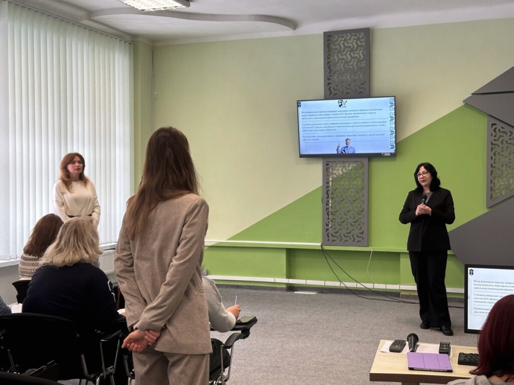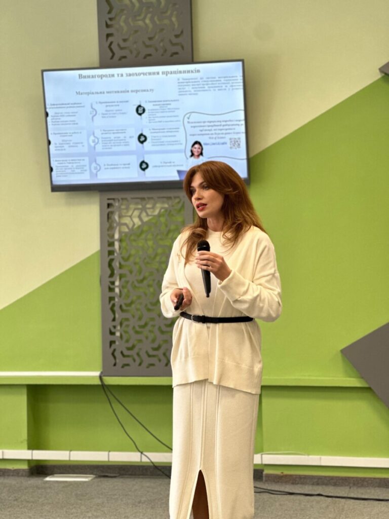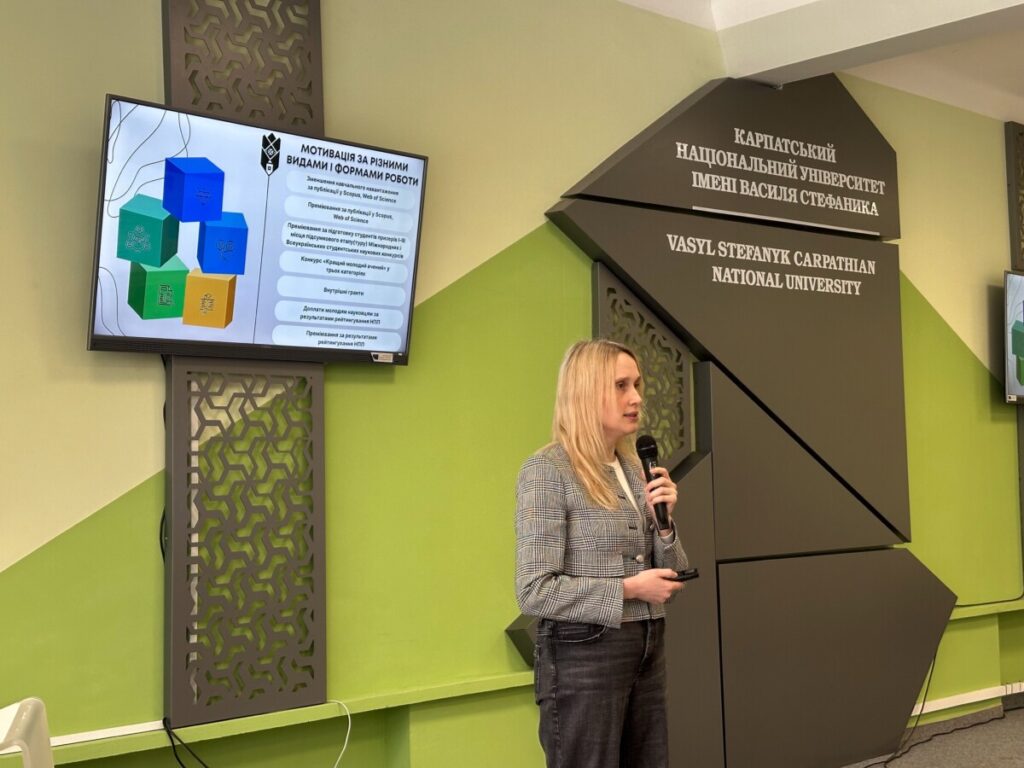 – Ірина Григорук, начальник науково-дослідної частини, окреслила роль наукової складової в реалізації освітніх програм, мотивацію та заохочення до проєктної діяльності;