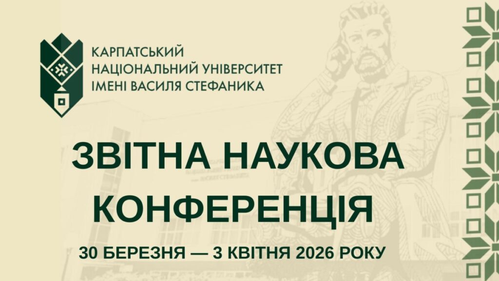30 березня — 3 квітня 2026 року в Карпатському національному університеті імені Василя Стефаника відбудеться звітна наукова конференція викладачів, докторантів, аспірантів та студентів університету за 2025 рік. 30 березня 2026 року о 14:00 (аудиторія 23) відбудеться загальноуніверситетське пленарне засідання. Вступне Читати далі