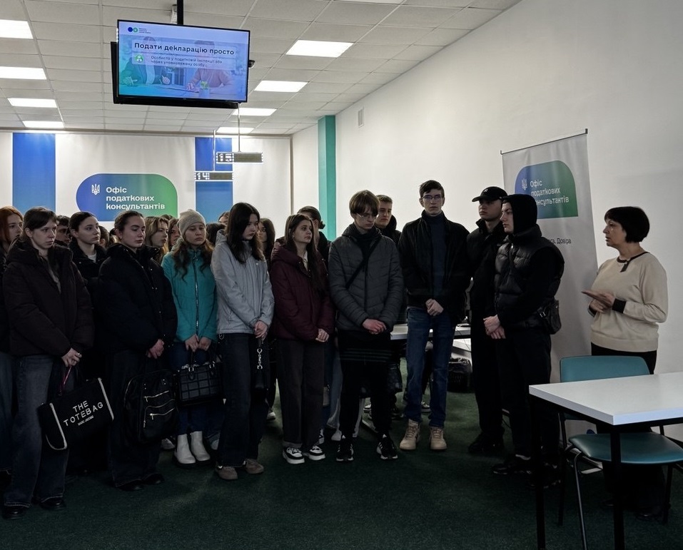 У межах заходу майбутні фахівці освітніх програм «Підприємництво та інновації», «Електронна комерція» та «Підприємництво, торгівля та біржова діяльність» ознайомилися з роботою податкової служби, сучасними електронними сервісами та особливостями надання адміністративних послуг платникам податків.
