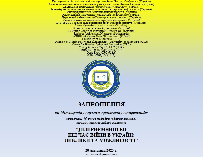 20 листопада 2023 р. з нагоди 60-річчя заснування кафедри, яка сьогодні носить назву підприємництва, торгівлі та прикладної економіки відбулась міжнародна науково-практична конференція. Міжнародна науково-практична конференція «Підприємництво під час війни в Україні: виклики та можливості» відбулась у змішаному форматі та об’єднала Читати далі